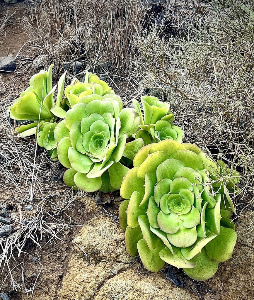 The Canary Aeonium (Aeonium canariense) is endemic to Tenerife and can be found up to 4,200 feet above sea level, including on rocky cliffs. (Emily Louina Cook)